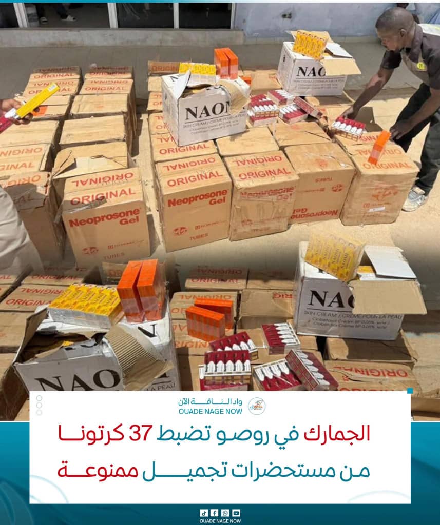 اود الناقة الآن – تمكنت فرقة الرقابة الإقليمية التابعة للإدارة الجهوية للجمارك في روصو من ضبط شحنة من مواد التجميل المحظورة، بلغت 37 كرتونًا تضم نحو 11 ألف علبة.